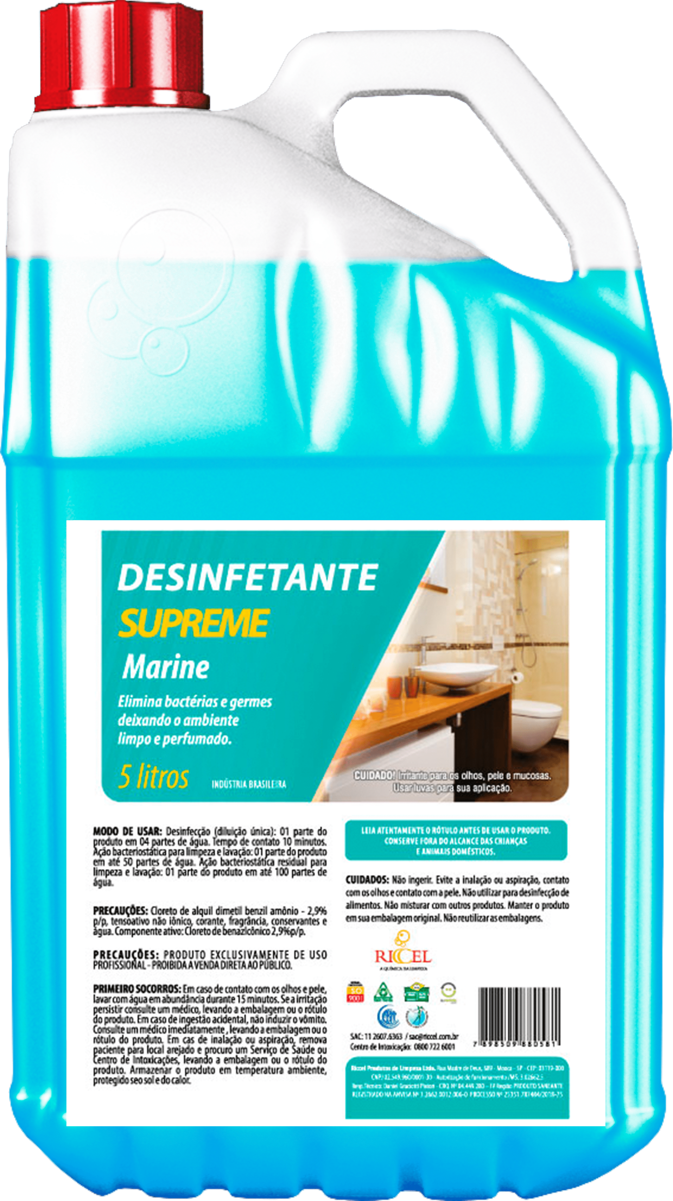 O Desinfetante Supreme Marine elimina bactérias e germes deixando o ambiente limpo e com um agradável perfume. Recomendado para limpeza e desinfecção de banheiros, louças sanitárias, ralos, pisos, azulejos, e superfícies, laváveis.